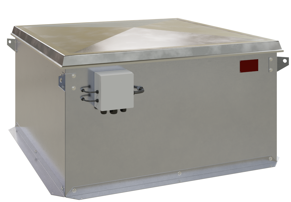 Der elektrische Anschluss erfolgt über den außen am Dachsockel montierten Klemmkasten.
